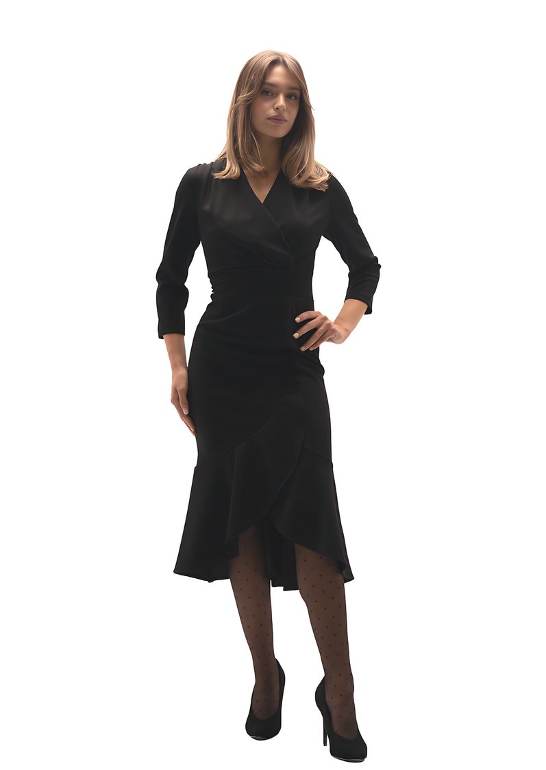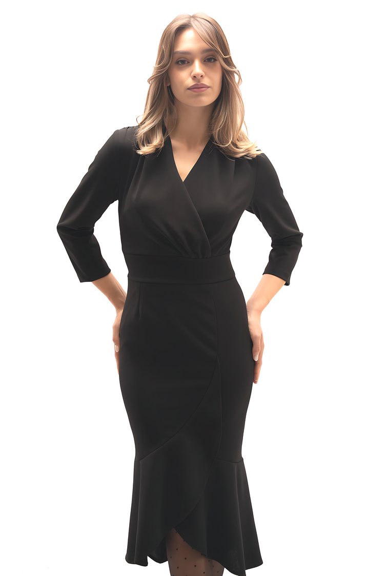 Φόρεμα Μίντι pencil ντραπέ με βολάν στο τελείωμα. 97%PL3%EL