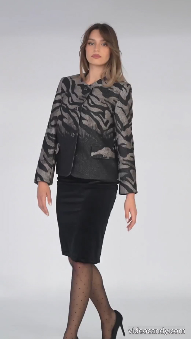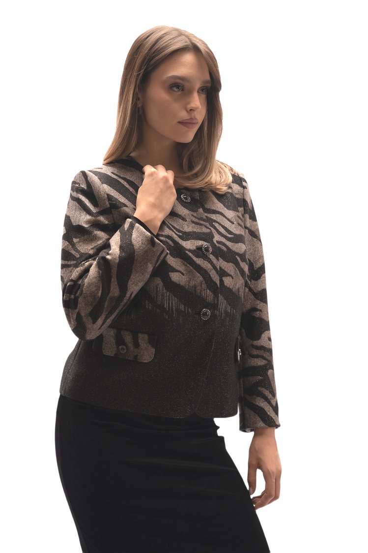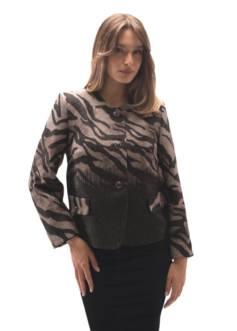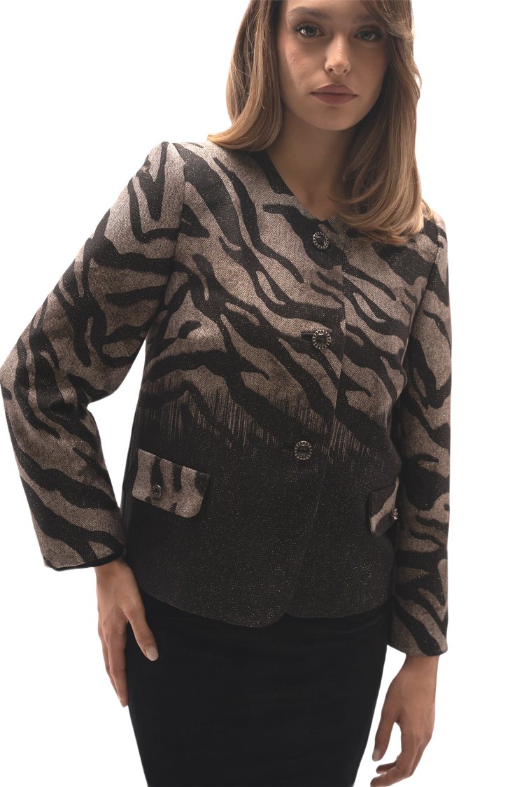 Σακάκι  σε  animal print και lurex με μακριά μανίκια, κουμπιά μπροστά και πατ. PL92% LUR5% EL3%