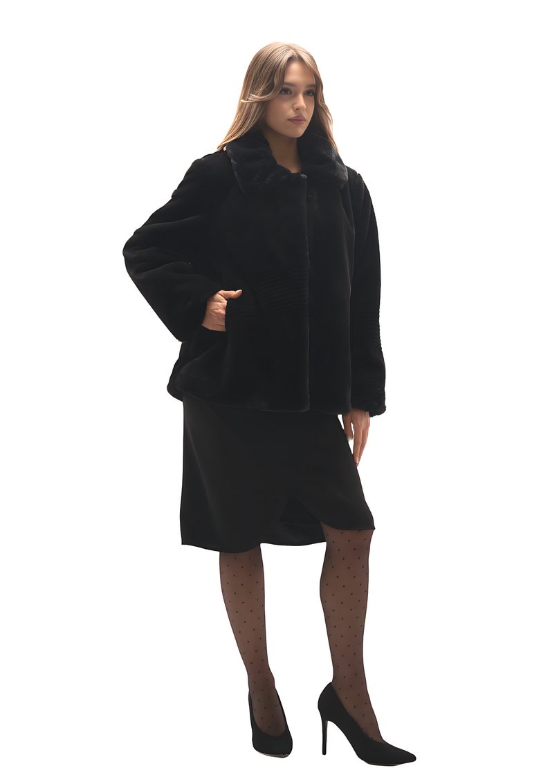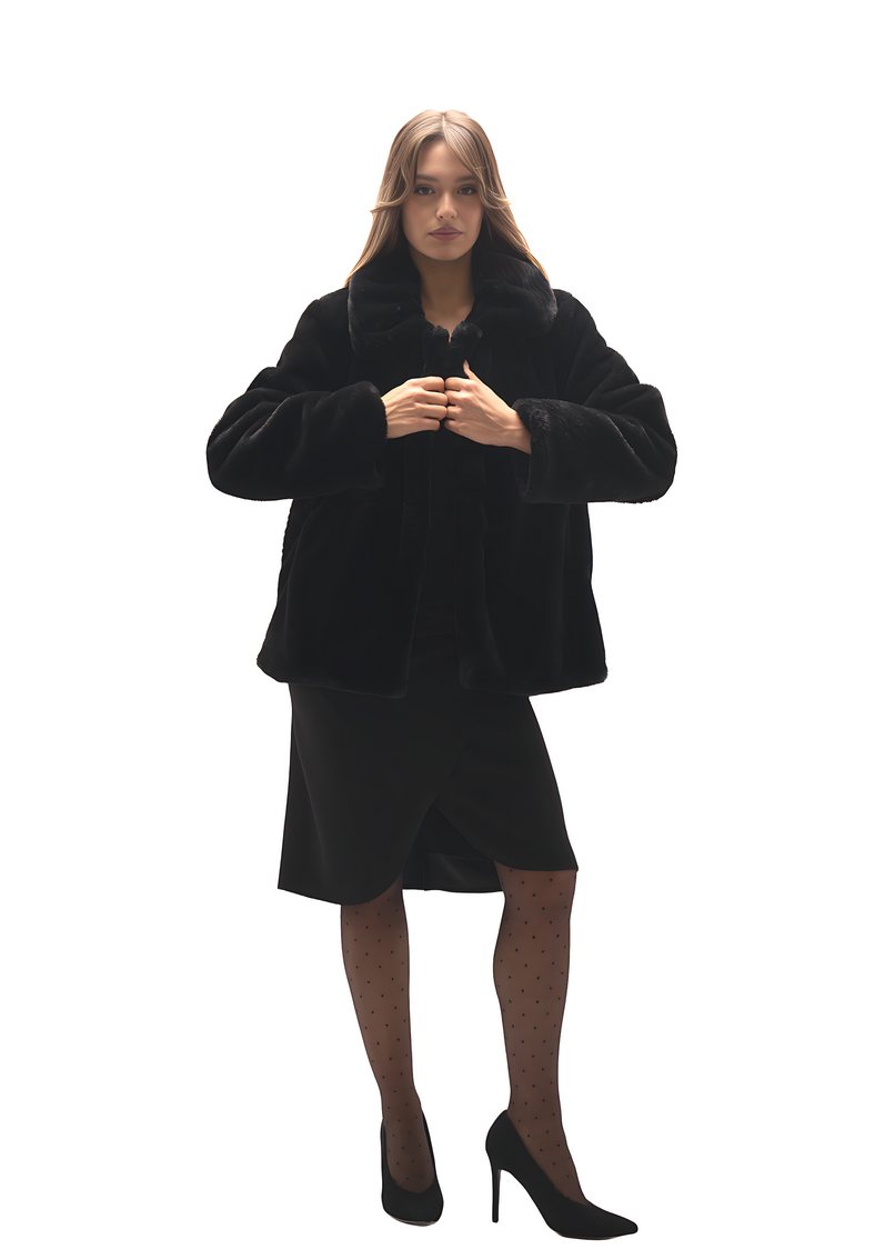 Πανωφόρι κοντό eco fur με μακριά μανίκια και πλαϊνές τσέπες. Διαθέτει ενσωματωμένη φόδρα και κλείσιμο με δύο κουμπώματα μπροστά. 100% POLYESTER
